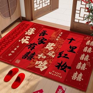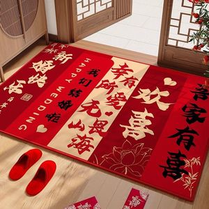 结婚专用门垫家用吸水防滑玄关脚垫红色喜庆水晶绒耐脏楼梯地垫
