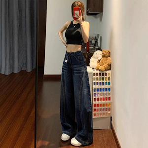 美式水洗弯刀牛仔裤女2025秋季新款高腰宽松显瘦垂感阔腿镰刀裤子