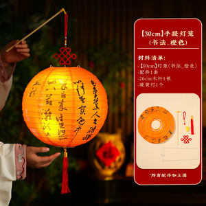 中秋节纸灯笼国风带灯挂饰手工diy 户外儿童手提中式古风发光宫灯