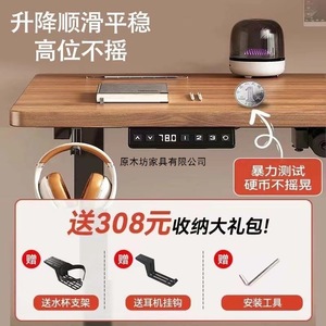 实木芯电脑桌智能电动升降桌家用学习办公书桌工作台新款电竞桌