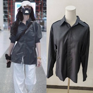 长期现货2025秋冬倪妮同款灰色高级感长袖衬衫通勤穿搭衬衣上衣女