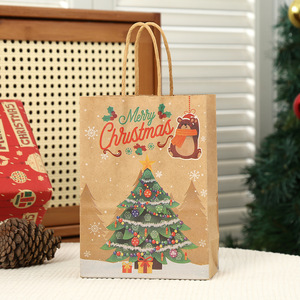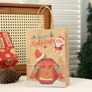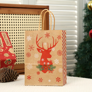 圣诞节印花手提袋派对节日礼物礼品袋服饰包装牛皮纸购物袋批发