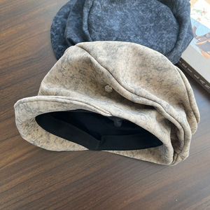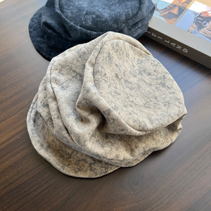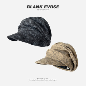 日系复古褶皱晕染马术帽子女气质百搭画家帽大头围显脸小鸭舌帽潮