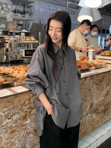 MOXI十三行女装2025秋季新款中长款衬衫女设计感小众长袖衬衣上衣