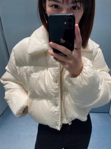 新款miu方领短款羽绒服字母满印25秋冬抽绳时尚百搭面包鸭绒外套