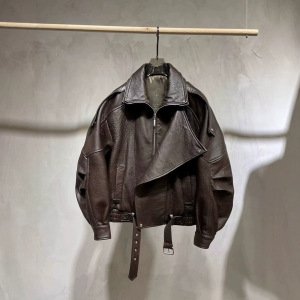 跨境羊羔泡皮机车夹克宽松PU皮皮衣oversize新款高端简约早秋外套