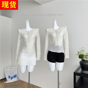 Skk 佩里月光 康宝莱幻彩珠片棉麻轻薄透感慵懒开襟针织衫