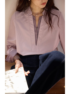 soljghter法式复古假两件衬衫女秋季长袖上衣