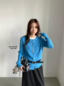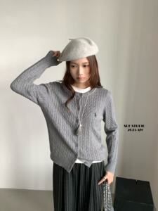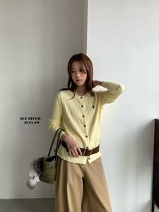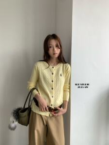 SUE秋季新款刺绣小马麻花编织针织开衫韩系休闲宽松长袖上衣37172