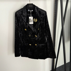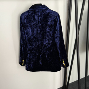 25新款高端金色异形纽扣胸针装饰修身双排扣高档丝绒长袖西装外套