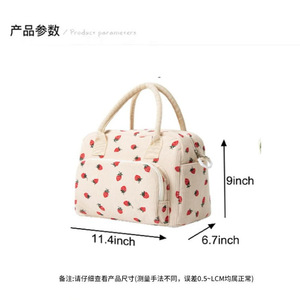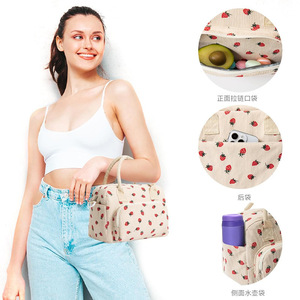 定制跨境热销款草莓印花午餐包 多功能便捷大容量饭盒便当手提包