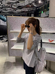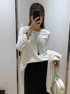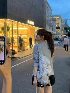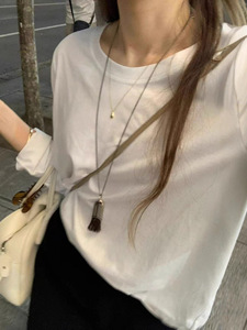 现h韩国东大门同款2025年秋ounce韩系宽松纯色上衣长袖T恤打底衫
