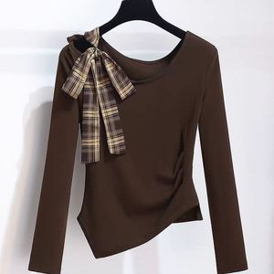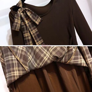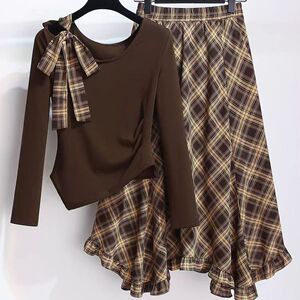 不规则斜肩长袖系带上衣格纹半身裙女套装薄款2025早秋新款连衣裙