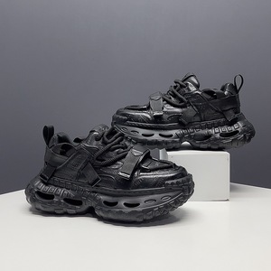 欧洲站男鞋老爹鞋男款潮牌厚底增高鞋男士真皮休闲鞋头层牛皮潮鞋