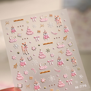铁素新工艺圣诞系列粉熊M-776卡通可爱美甲贴纸爆款批发美甲贴