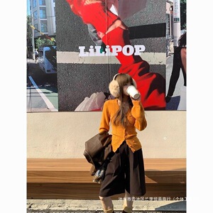 橘色V领麻花长袖针织开衫女早秋穿搭韩系高级感毛衣独特绝美上衣
