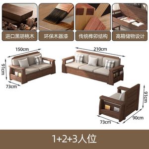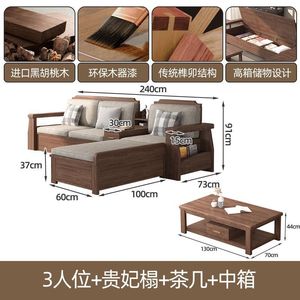 中式实木沙发组合客厅2025黑胡桃木家具大小户型新中式沙发家用