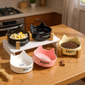 木架陶瓷狗碗猫碗大口径喝水食盆防打翻水碗宠物碗水粮两用批发