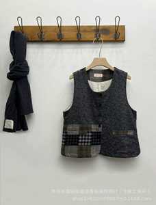 不对称撞色格子拼接马甲女秋冬外穿无袖坎肩日系复古叠穿背心