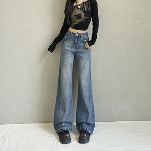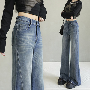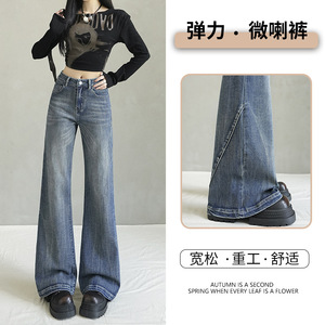 秋冬宽松微喇牛仔裤女弹力重工高腰辣妹修身百搭微阔马蹄喇叭裤