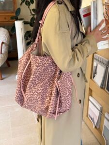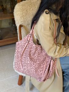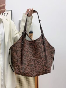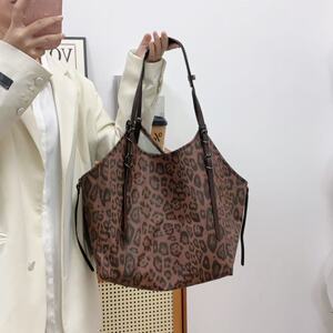 复古慵懒风粉色豹纹托特包2025新款大容量通勤托特包单肩腋下包女