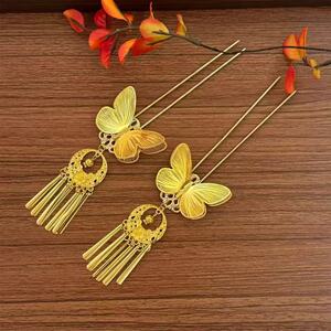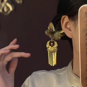 「金钿蝶夙」2025年原创新中式国风金色蝴蝶流苏发簪女发钗簪子发