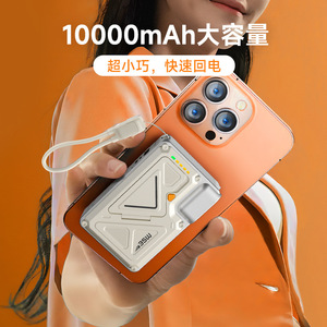 跨境35W磁吸充电宝AC插头超级快充10000毫安移动电源自带线带支架