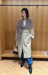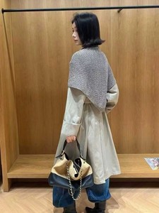 秋季新款慵懒风气质V领配披肩长款风衣外套中长上衣146
