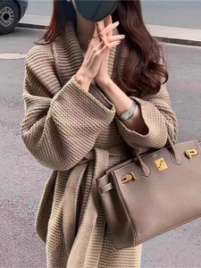 欧货女装针织开衫秋季新品慵懒风系腰带修身简约气质纯色毛衣外套
