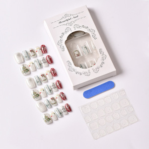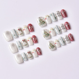 30片跨境圣诞节欧方鎏金猫眼穿戴甲3D立体银色雪花圣诞树美甲甲片