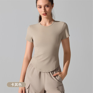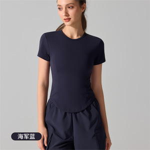 抗菌圆领瑜伽服跑步上衣修身纯色t恤收腰遮肉显瘦运动健身短袖女