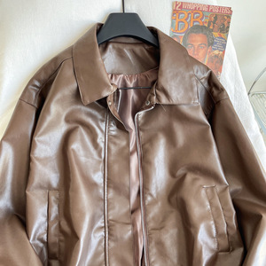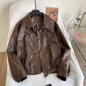韩版时尚休闲皮衣外套女2025新款洋气百搭慵懒风口袋设计宽松上衣