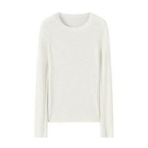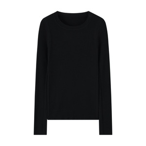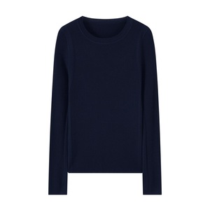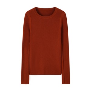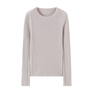 精纺100纯羊毛衫女圆领修身薄款打底衫柔软贴身穿抽条百搭绒衫