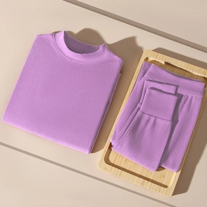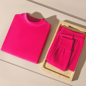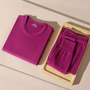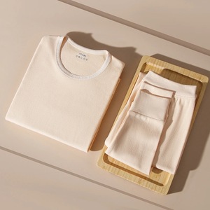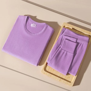 纯棉女士秋衣秋裤保暖内衣套装中圆领打底防寒保暖纯色棉毛衫薄款