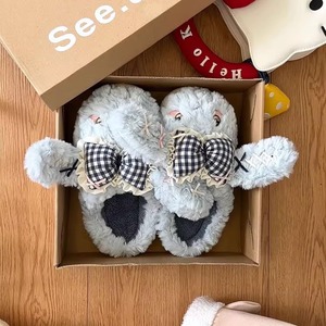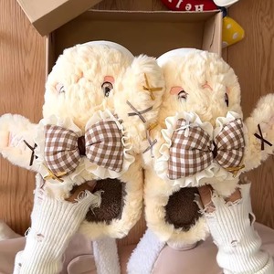 少女软萌蝴蝶结小兔子毛毛拖鞋女2025秋冬季新款厚底毛绒包头拖鞋
