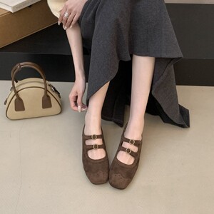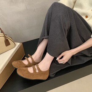 内增高复古棕色圆头玛丽珍单鞋秋季女鞋配裙子浅口单鞋芭蕾舞鞋