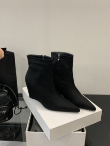 坡跟法式气质尖头黑色短靴女靴子2025年秋季新款