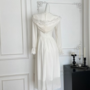 实拍Acaine杏色长款蕾丝连帽长袖连衣裙秋季法式复古气质高级裙子