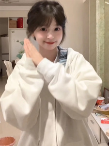 格子连帽开衫卫衣女春秋薄款新款宽松小个子女卫衣好看拉链外套