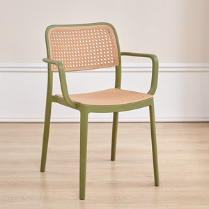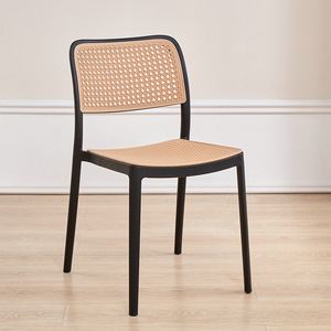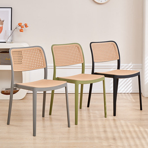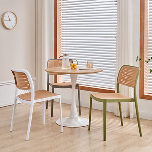 北欧餐椅仿藤编塑料椅子家用可叠放椅子家用办公椅网红靠背休闲椅