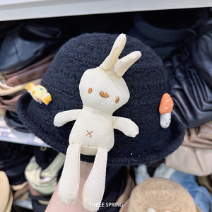 批发韩国2025年新款纯色兔子玩偶卷边渔夫帽休闲大头围显脸小盆帽