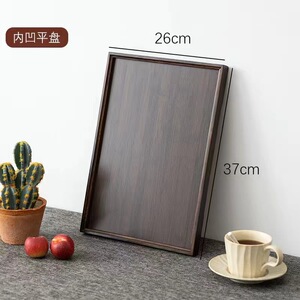 小型干泡茶托盘胡桃色盘抓手平提餐盘日式竹木制托盘长方形竹盘子