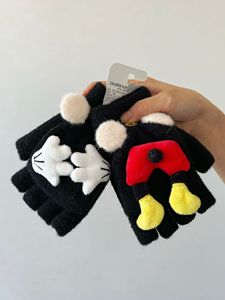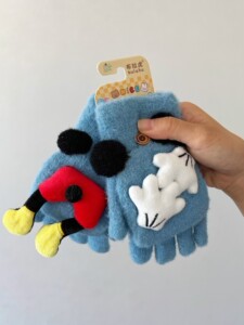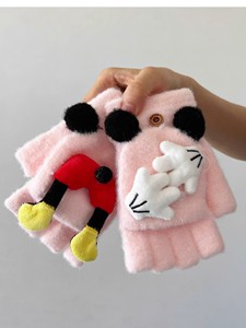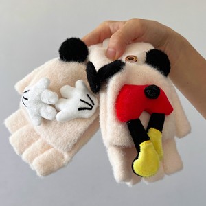 男女款米奇立体玩偶半指手套两用分指翻盖保暖手套秋冬季长毛绒款