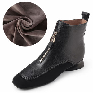 3cm/法式时尚粗跟短靴女舒适方头软底软面复古高级感冬季女鞋子