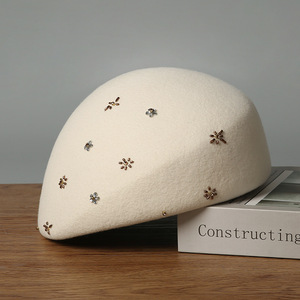 秋冬季新款时尚羊毛韩版水钻花朵装饰英伦蓓蕾帽优雅女士帽子批发