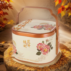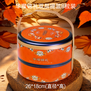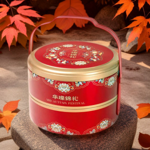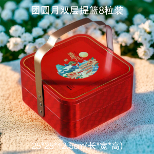2025年新款月饼包装盒礼品盒马口铁空双层手提篮中秋月饼礼盒