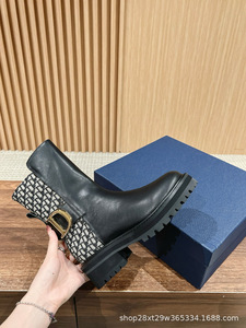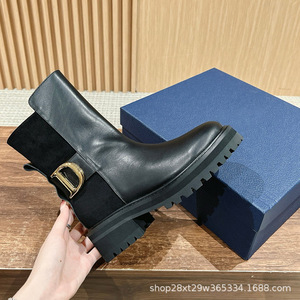 2024刺绣字母短靴女秋冬侧拉链圆头马丁靴厚底防滑金属扣机车靴潮