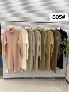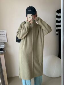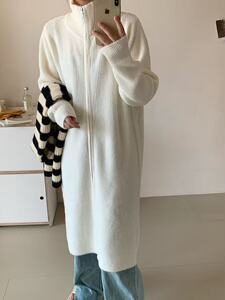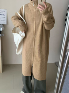 翻领拉链韩版中长款毛衣裙2025年秋季内搭针织连衣裙女配大衣外套