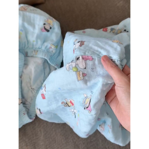 可爱蓝色卡通史努比印花睡裤女春秋宽松高腰遛弯裤休闲家居长裤子