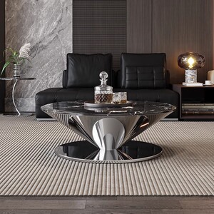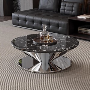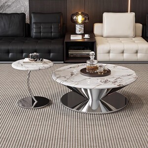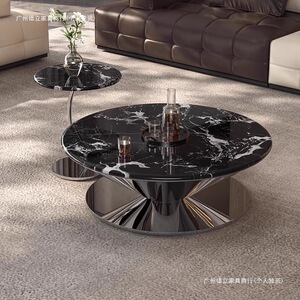 大理石圆形飞碟茶几客厅家用轻奢高级感设计师款不锈钢茶几极简